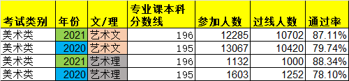 陜西美術類統考通過率/專業課本科
